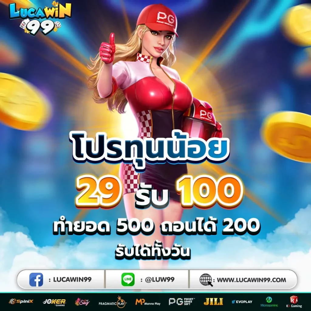 เพื่อน ๆ ครับ วันนี้ผมจะมาแนะนำโปรโมชั่นสุดพิเศษจาก Lucawin99 ที่จะทำให้คุณได้รับประสบการณ์การเดิมพันออนไลน์ที่คุ้มค่ากว่าที่เคย ทางเว็บได้จัดโปรโมชั่นต้อนรับสมาชิกใหม่สุดพิเศษ มอบโบนัสสูงสุดถึง 100% สำหรับการฝากครั้งแรก นั่นหมายความว่าหากคุณฝากเงิน 1,000 บาท คุณจะได้รับเครดิตเพิ่มอีก 1,000 บาท รวมเป็น 2,000 บาทเลยทีเดียว